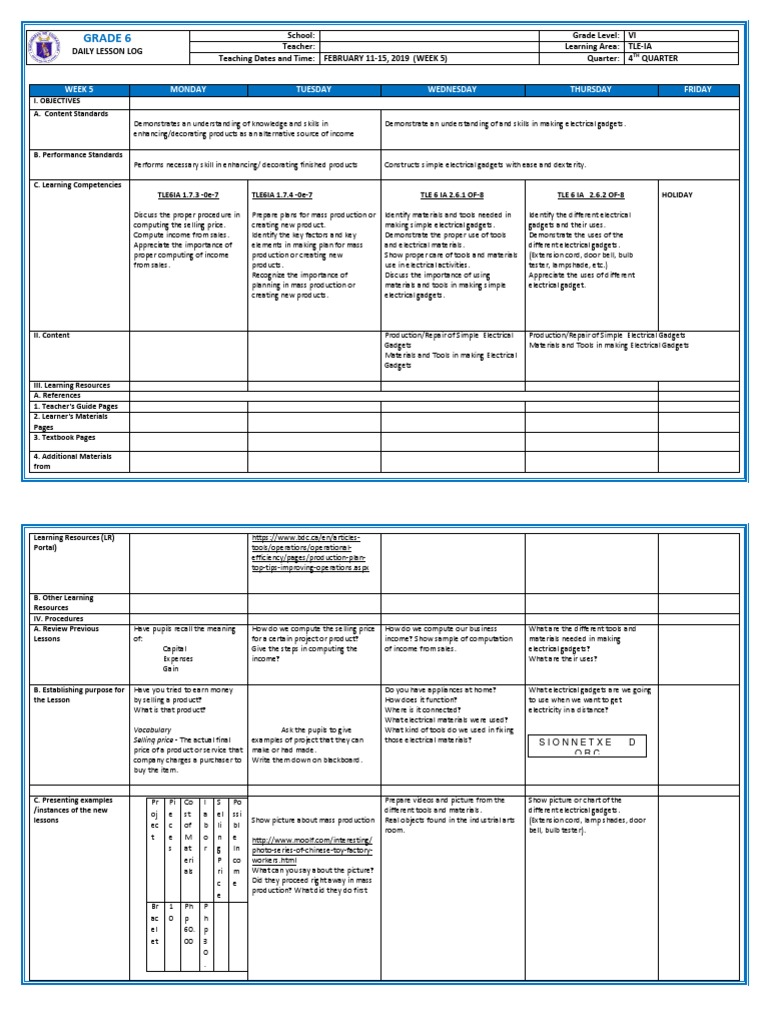 Dll G6 Q4 Week 5 All Subjects Educational Technology Learning